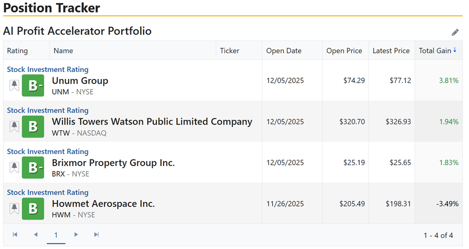 Howmet, which we had carried over, is leaving with a loss. But it recovered more than half of the open loss it had at the start of this cycle.