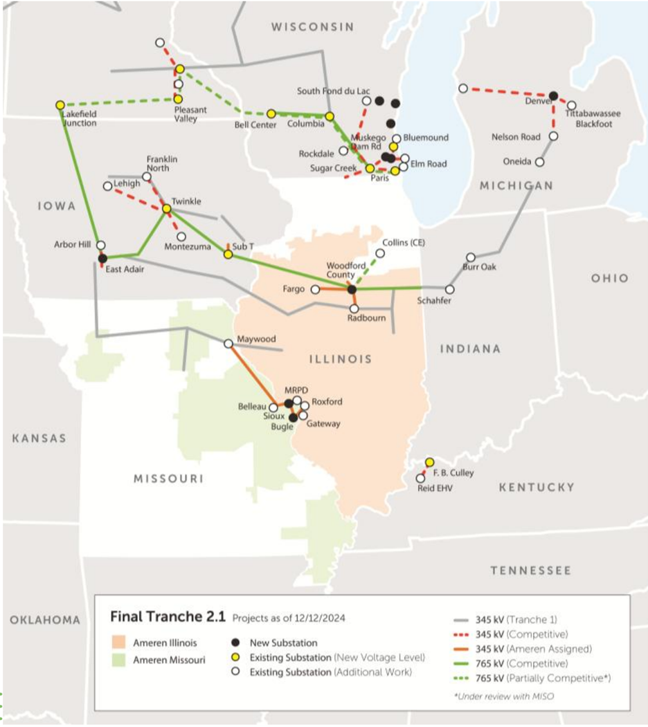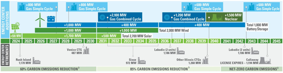 It has solar, gas and nuclear facilities, with transmission lines stretching across several states from Missouri to Michigan.