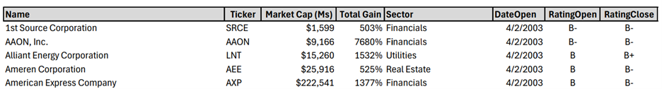 Because we have an internal list here at Weiss Ratings where we track every stock that has never been rated below a “Hold.”