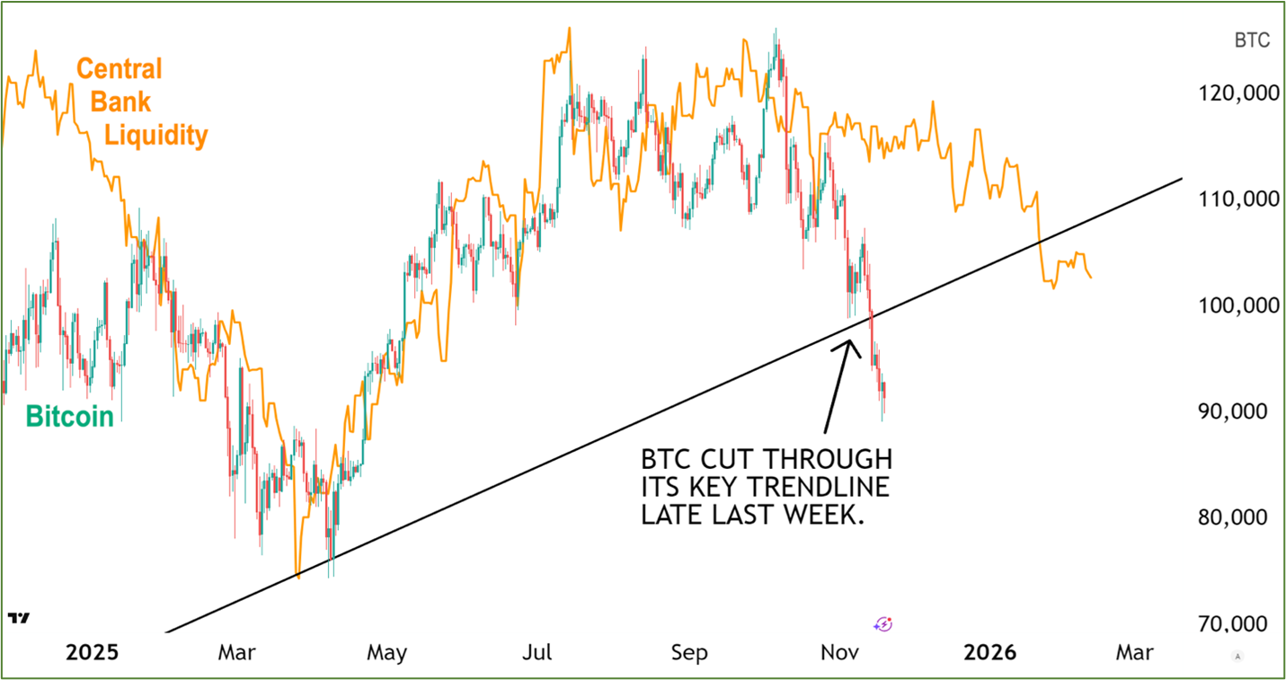 Here’s what I do expect: Downside pressure will last until the next liquidity bottom — likely in Q1 2026.