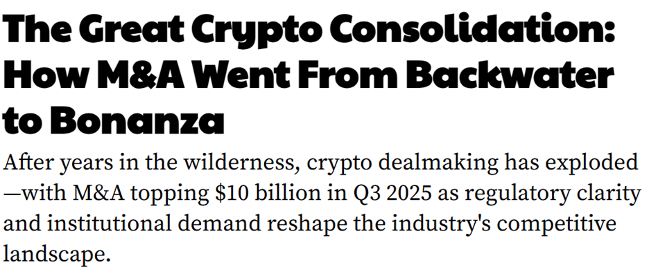 Crypto mergers and acquisitions (M&A), for example, topped $10 billion for the first time in the third quarter, a more than thirty-fold increase from a year earlier.