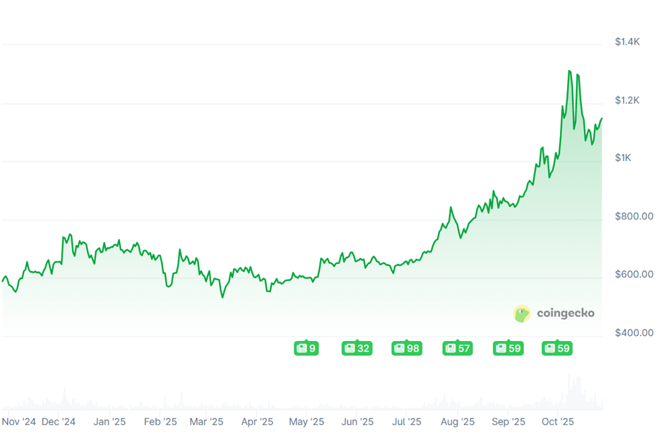 That outpaces Bitcoin’s 70% gain and leaves traditional markets — the Nasdaq (+27%) and S&P 500 (+18%) — far behind.