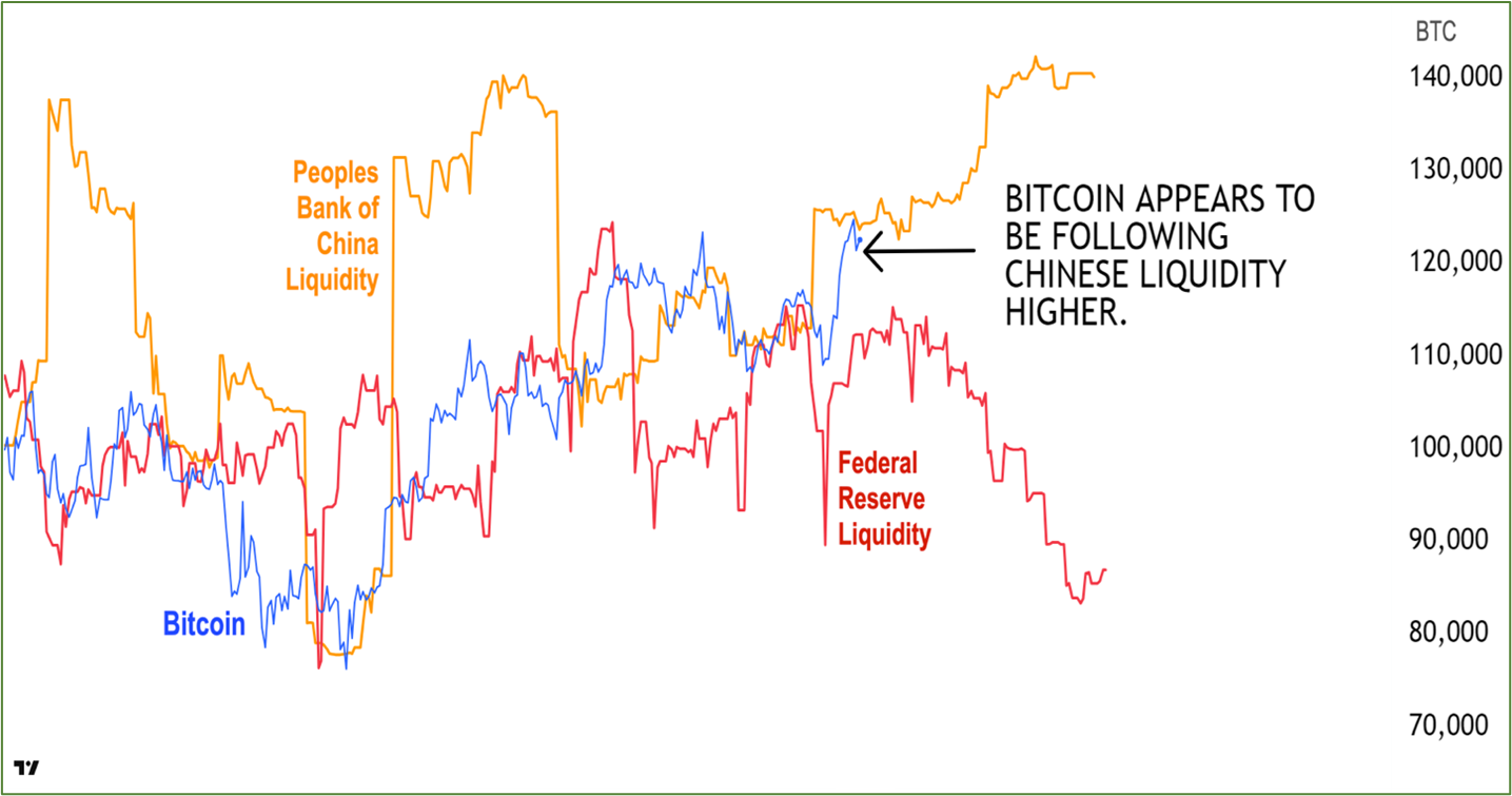 Here’s the good news. My research indicates Bitcoin is actually far more sensitive to Chinese liquidity than to the Fed’s.