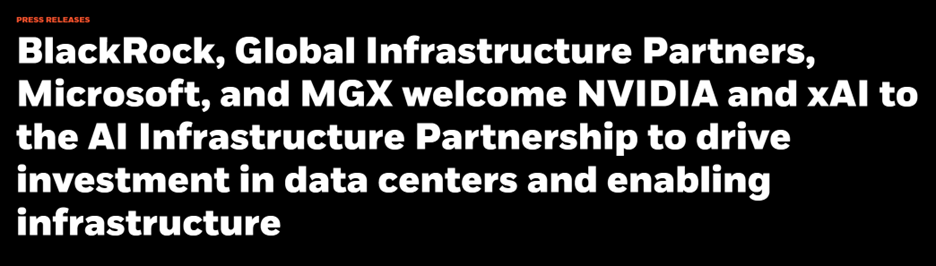 And Global Infrastructure Partners (GIP) — a partnership between BlackRock, Microsoft and MGX — announced that NVIDIA and xAI will join the AI Infrastructure Partnership (AIP) to invest in new and expanded AI infrastructure.