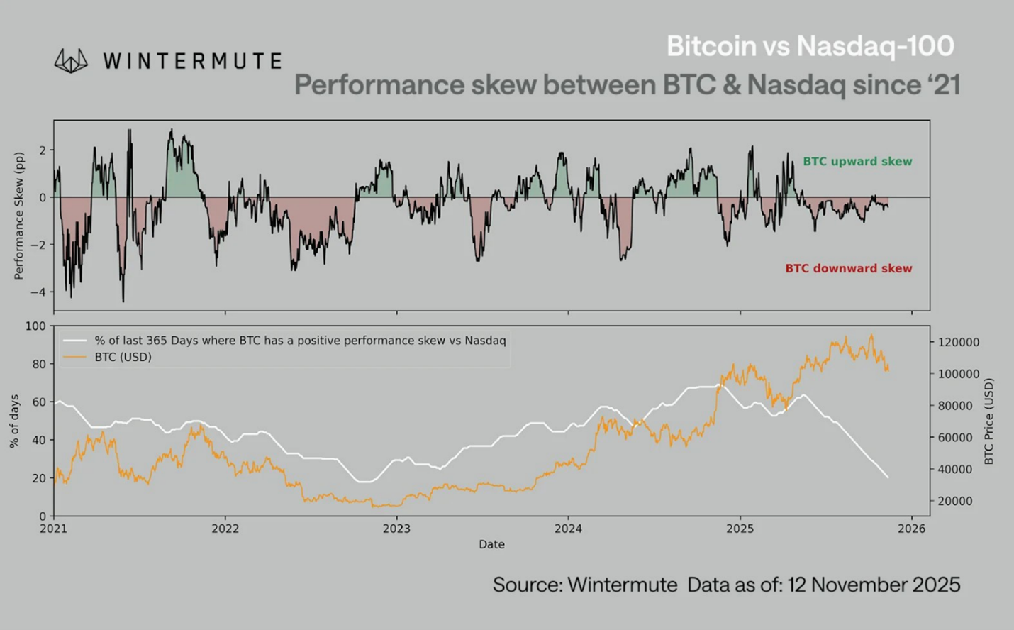 Bitcoin is still tightly tethered to the Nasdaq-100, but the relationship has taken a toxic shape.