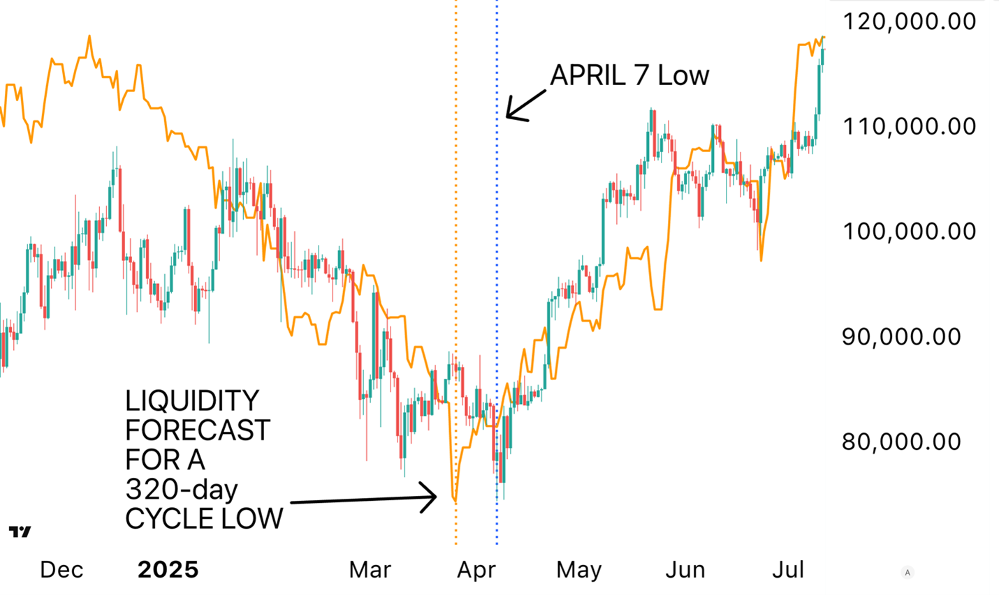 For example, back in late March and early April, liquidity was showing a prominent low around March 26. At the same time, my model pinpointed April 7 as the biggest low of the year.