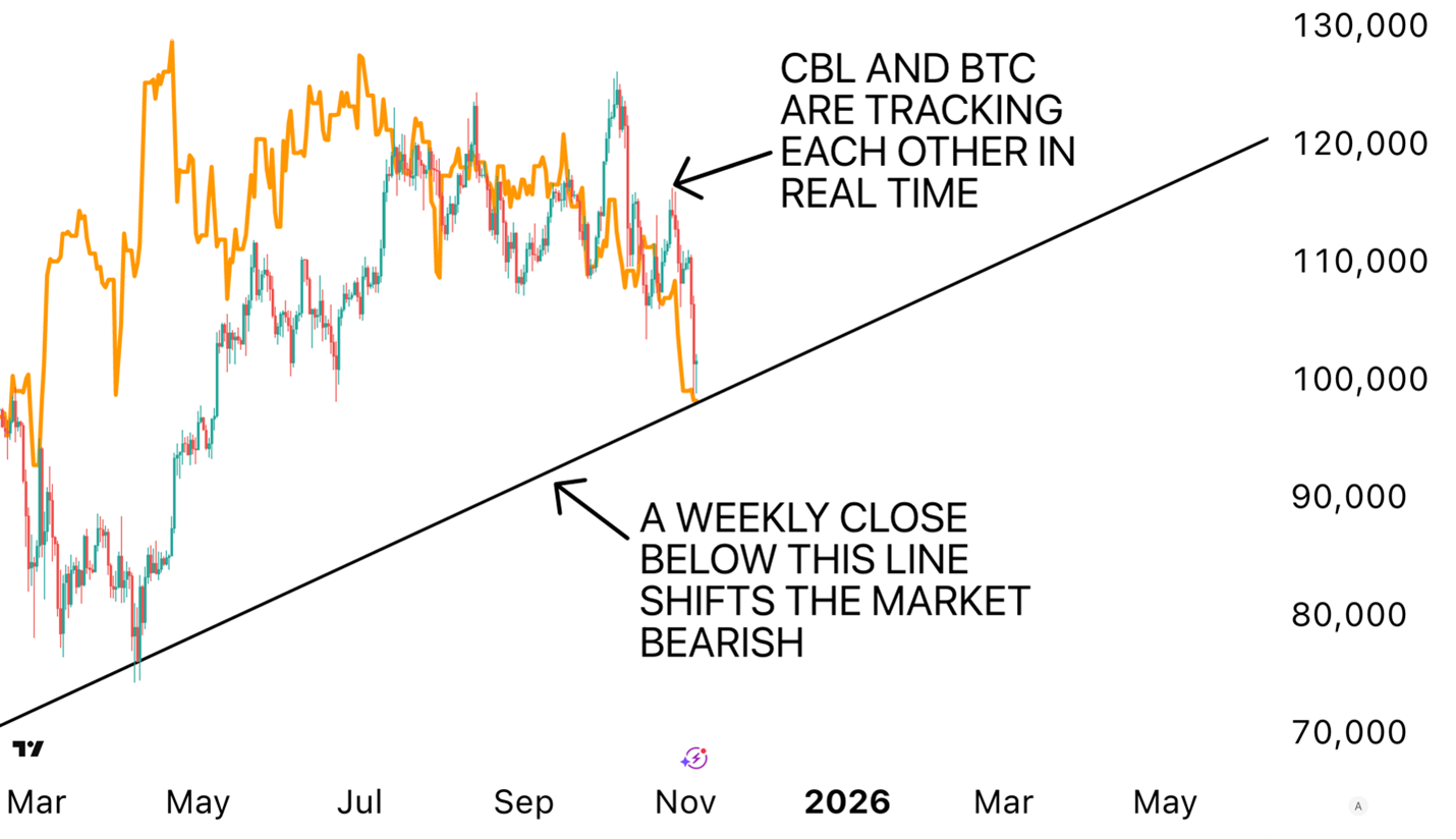 Or the more restrictive Central Bank Liquidity (CBL), which Bitcoin has been tracking throughout 2025 …
