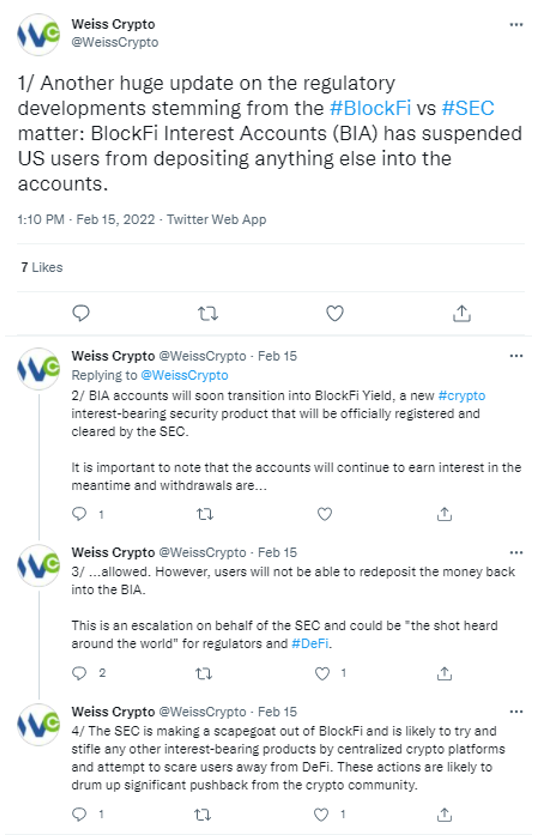 Well, we’ll likely see the situation on the Ukrainian border develop. It’s possible a diplomatic solution can be reached between Russian and Ukraine. It’s also possible that tensions continue to rise. Either way,– it’ll be interesting to see how the crypto markets respond.