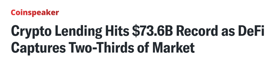 Crypto-collateralized lending hit a record $73.6 billion in Q3 2025 according to Galaxy Research, surpassing the previous peak from Q4 2021. On-chain lending now commands 66.9% of that market.