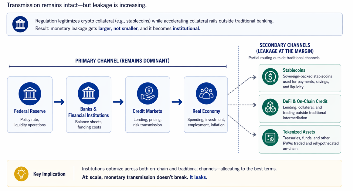 BCG and Ripple project the tokenized asset market could reach $19 trillion by 2033. At that scale, monetary transmission does not break. It leaks.