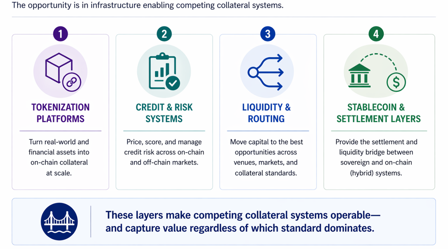 The opportunity for investors lies is in the firms building the infrastructure that makes competing collateral standards operable.