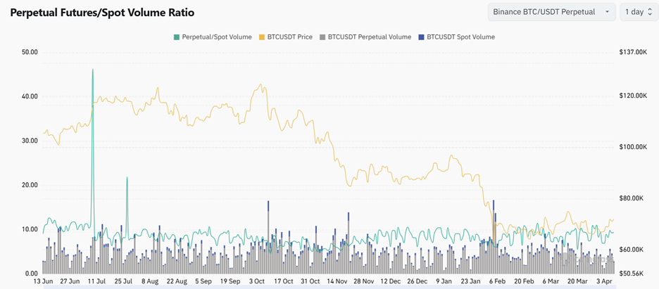 Data from CoinGlass shows that perpetual futures volumes consistently exceed spot trading volumes, often by several multiples.