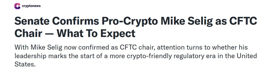 In the early hours of Friday morning, the U.S. Senate confirmed crypto-friendly lawyer Mike Selig as Commodity Futures Trading Commission Chair.
