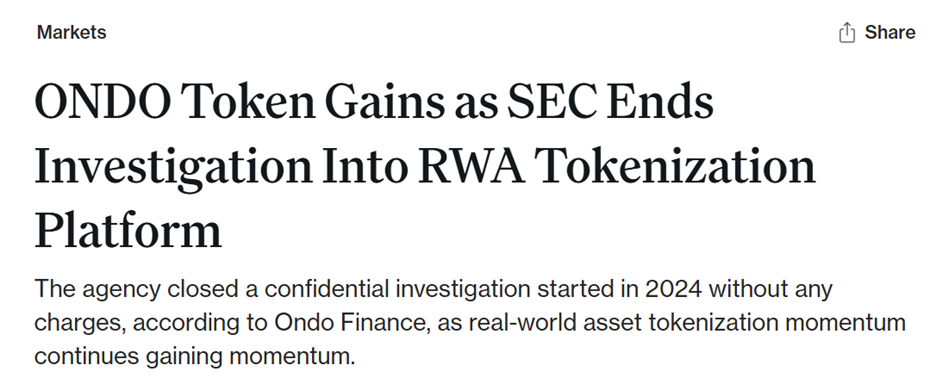 Earlier this week, the SEC dropped its two-year investigation of Ondo Finance (ONDO, “C+”) without charges.