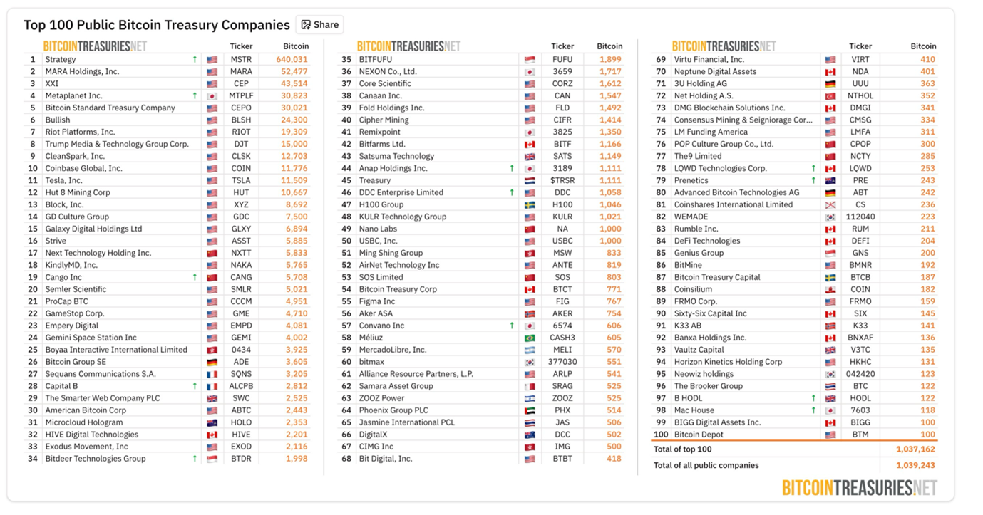 That makes it the fourth-largest corporate Bitcoin holder worldwide.
