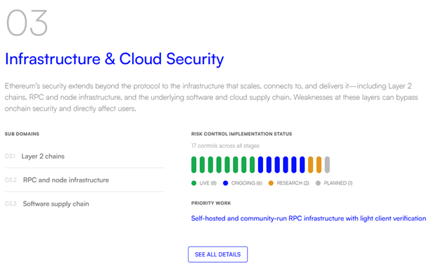 The dashboard's structure — tracking specific protections, their current status and what still needs to be built — is designed to make Ethereum's security auditable over time.
