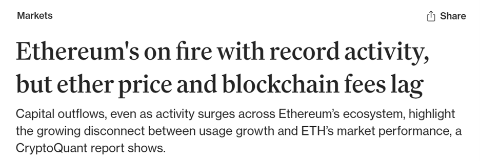 Despite record network activity, Ethereum’s price momentum has lagged, as highlighted in recent analysis of Ethereum network usage.