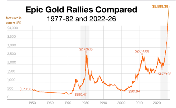 But because it also seems eerily similar to the epic, blow-off top that ended gold’s fabled run in the late 1970s.