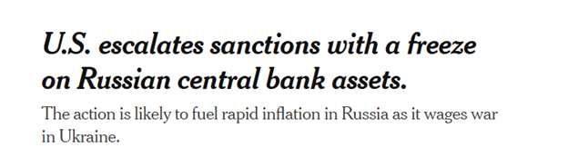 So, they almost immediately began swapping as many dollars as they could for other reserve assets. Assets that couldn’t be frozen or seized by any government.