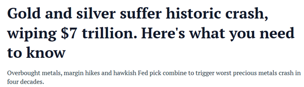 The scale was extreme by any modern standard: In the span of a few hours, over $7 trillion in value was wiped from metals markets — a number so large it barely registers.