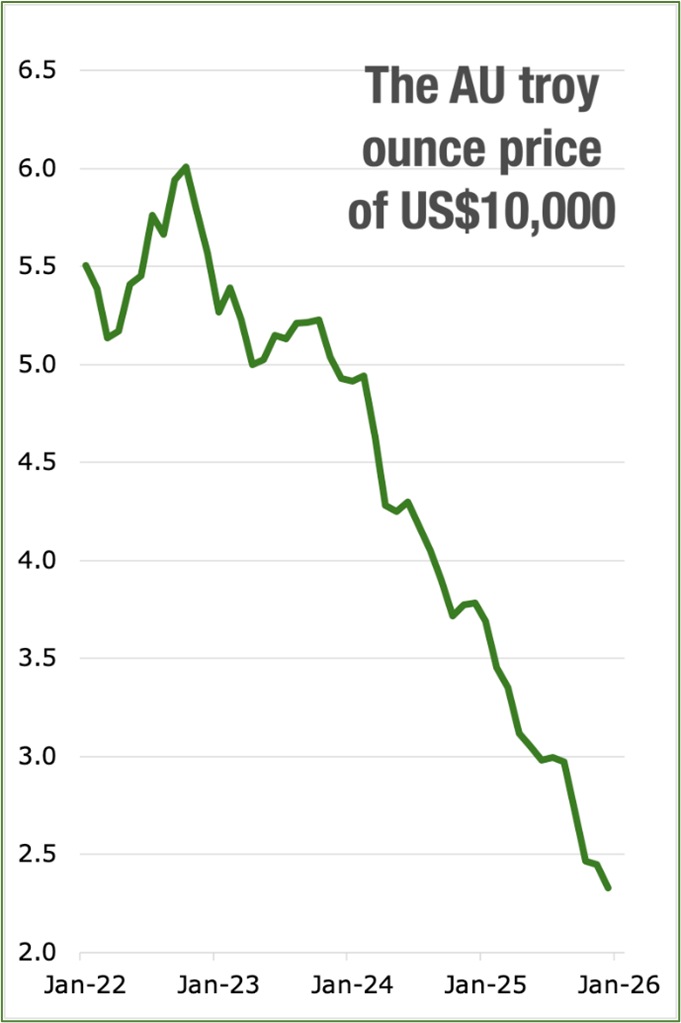 What it really shows is the U.S. dollar falling like a rock against gold (AU).
