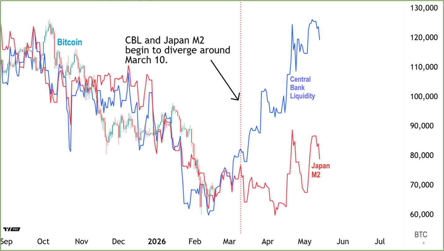Back in February, I told you how Japan’s M2 diverged from Central Bank Liquidity. Both indicators showed a rally ahead, but with very different strengths.
