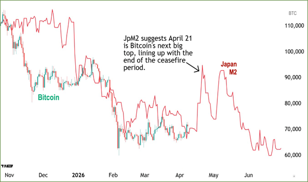 Now, Japan M2 is highlighting April 21 as the next critical top for Bitcoin.