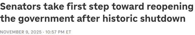 However, we’re seeing signs that the political gridlock — which has frozen agencies, stalled funding and kept risk sentiment on edge since Oct. 1 — could soon end.