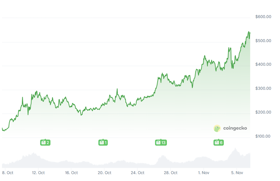 ZEC has soared in just the past few weeks. Depending on the window you pick, multiple outlets have clocked gains between 400%–700%.