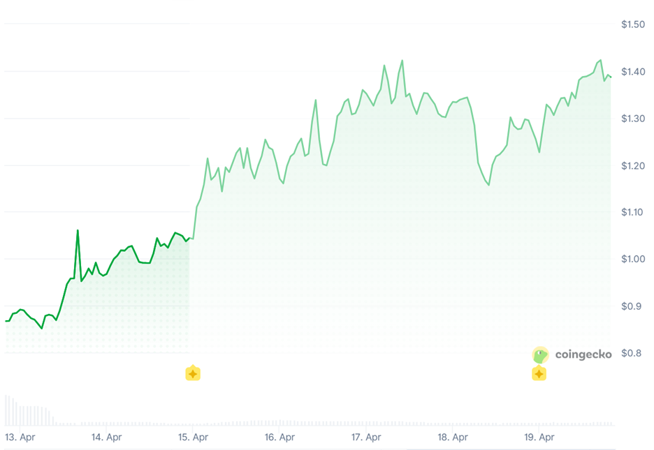 EdgeX is a decentralized perpetuals exchange. And its token has been commanding the spotlight over the past seven days thanks to its dominant price breakout.