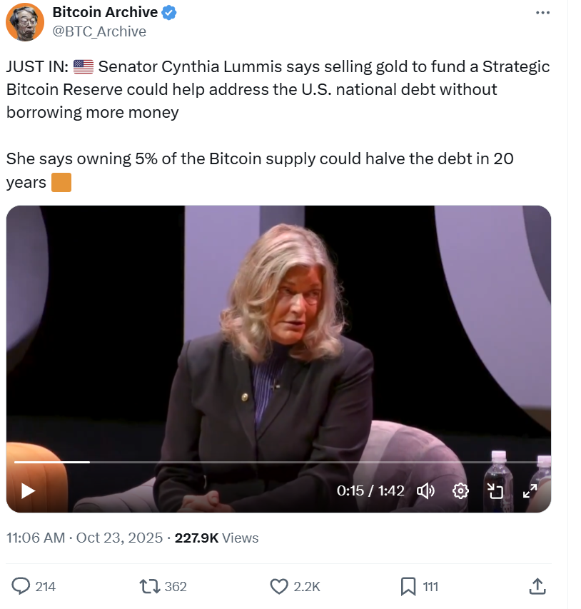 Sen. Lummis: Bitcoin Could Slash U.S. Debt by 50%