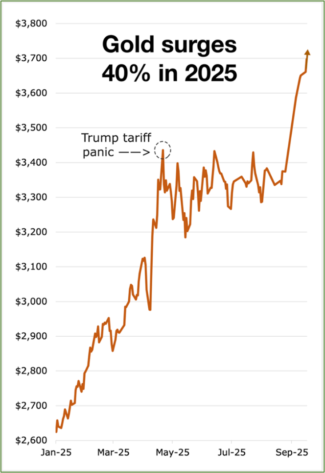 Compare that to the current rally, which began amid pandemic panic in late 2022 (at about $1,650). Now, gold is knocking on the door of $4,000 and has traded as high as $3,770 — which is about a 142% gain.