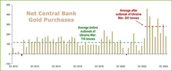 And sure enough, the statistics bear this out. After the Ukraine War broke out, average gold bought by central banks shot up by 138%!
