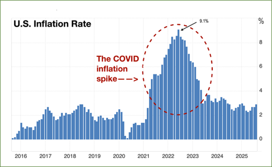 Stubbornly high inflation. In the 2020s, COVID ignited the biggest money-printing orgy the world has ever witnessed.