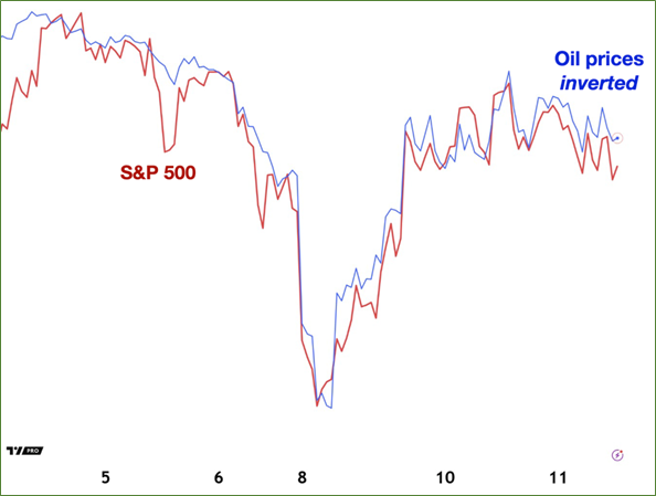 Here, you see the S&P 500 versus oil. Same conclusion.