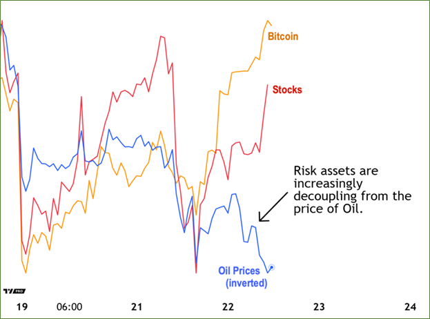 And for keen observers of price action, something even more remarkable unfolded: Risk assets finally began decoupling from crude.
