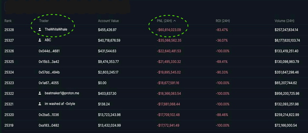 The worst performing wallet — dubbed TheWhiteWhale — lost a thumping $60.8 million.