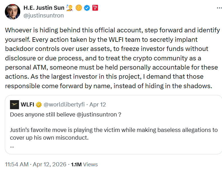 Sun is publicly accusing the project of building a "backdoor locking function" into its smart contracts. He says the project is completely centralized and treats the crypto community “as a personal ATM”.