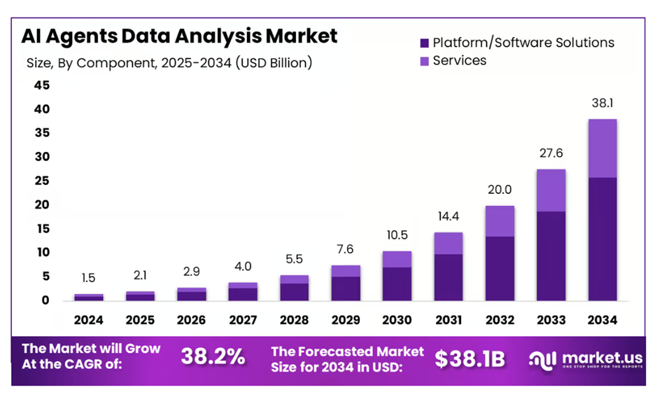 AI agents in particular? They’re expected to grow at a CAGR of 38.2% by 2034. That would bring the valuation to over $38 billion.