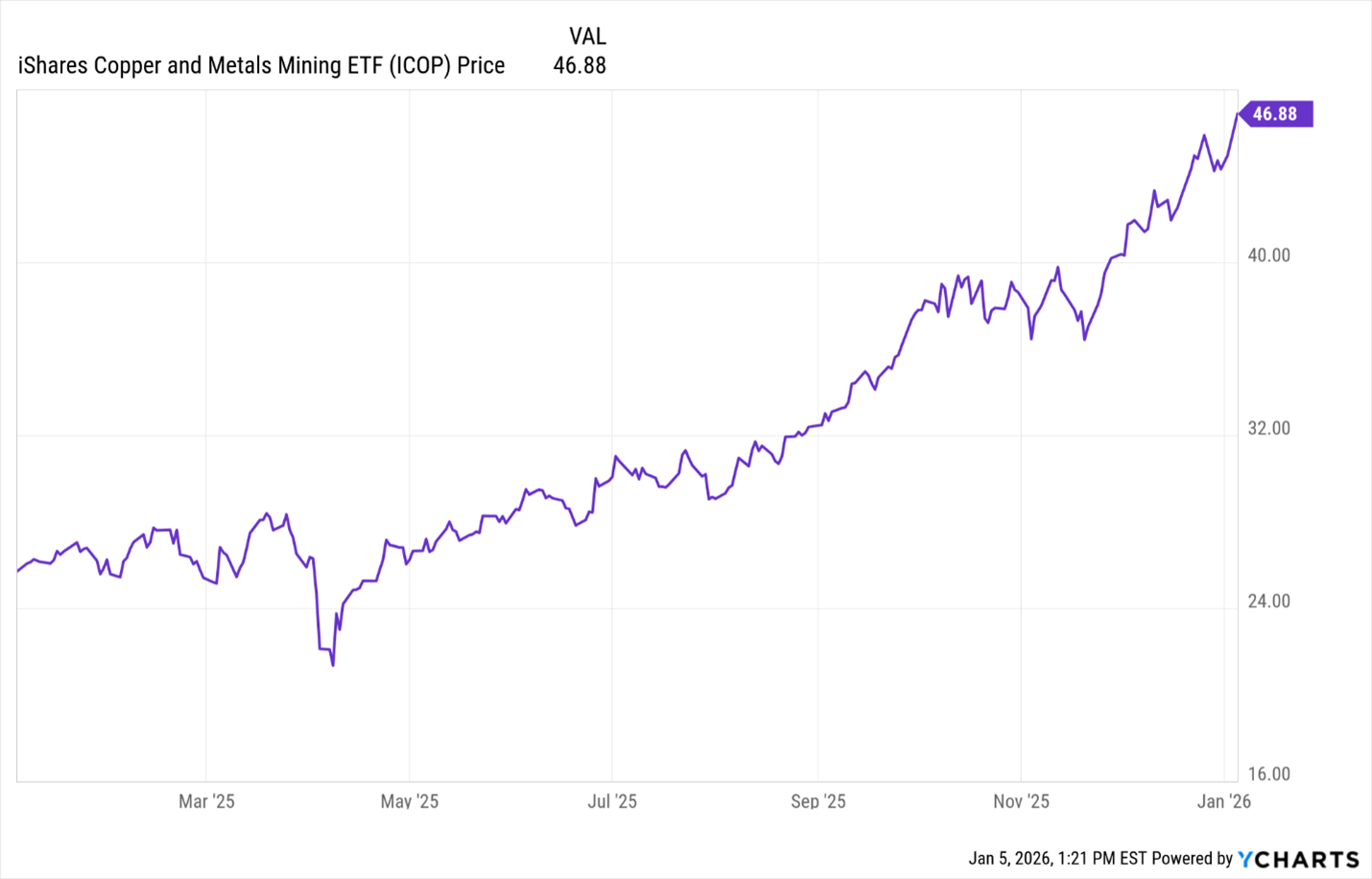 It gives you broad exposure to dozens of top copper miners around the world. With an attractively low expense ratio — just 0.47%.