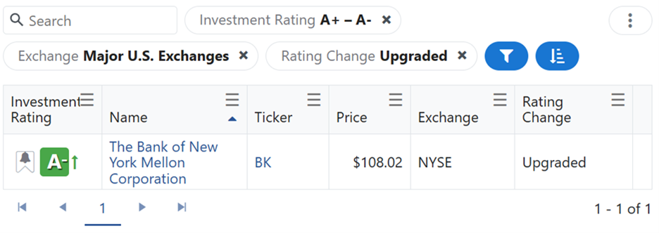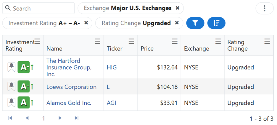 And instead of one stock, three freshly upgraded “A” companies popped up: