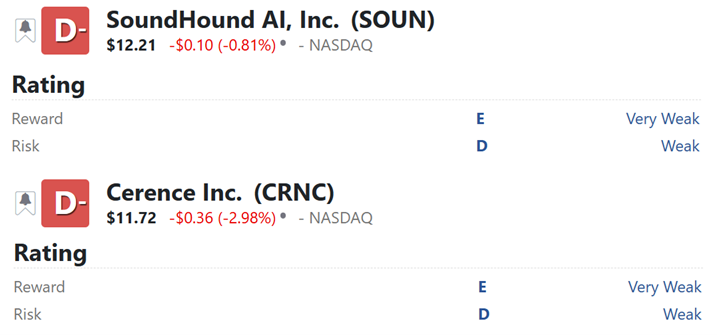 SoundHound AI (SOUN) and Cerence AI (CRNC) are two good examples.