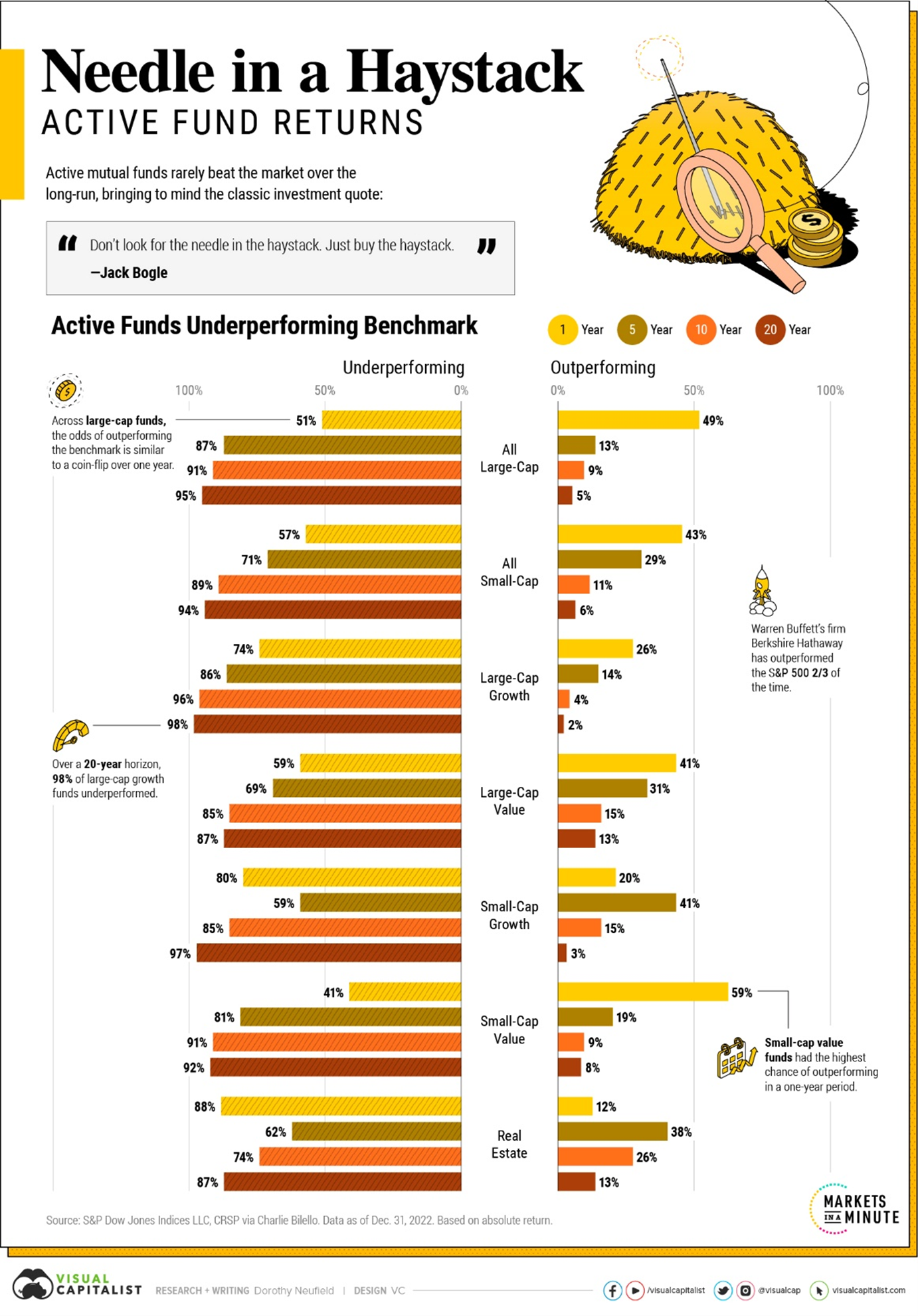 But the reality is that the majority of actively managed mutual funds (and ETFs) fail to beat their benchmarks.