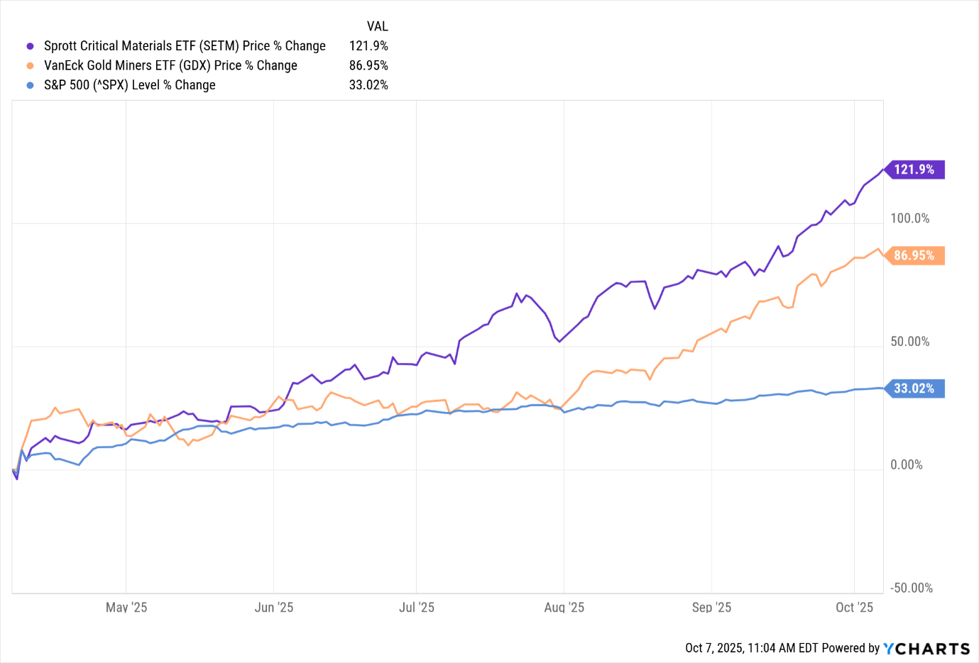 But for real outperformance, look at SETM — up 122% over the same time frame.