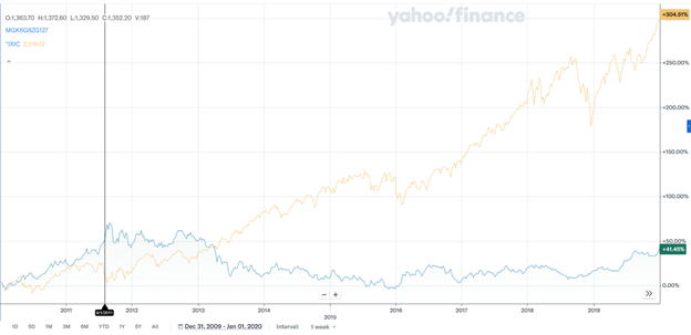 Meanwhile, the Nasdaq was DOWN 35% over that same time period — a brutal lost decade for momentum stocks!