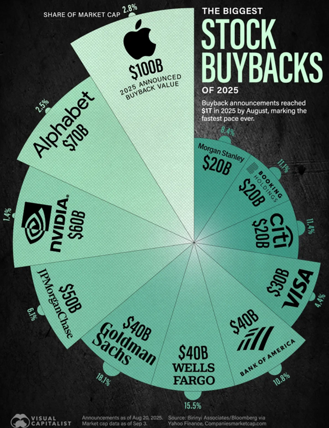 That’s not pocket change. That’s real money flowing back to shareholders — cutting share counts, boosting per-share profits and fueling a rally that has pushed the S&P 500 and Nasdaq to fresh highs.