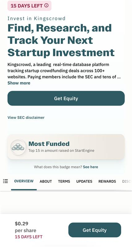 That’s why I’m highlighting Kingscrowd —which is currently the data center for Reg-CF & Reg-A crowdfunding deals.