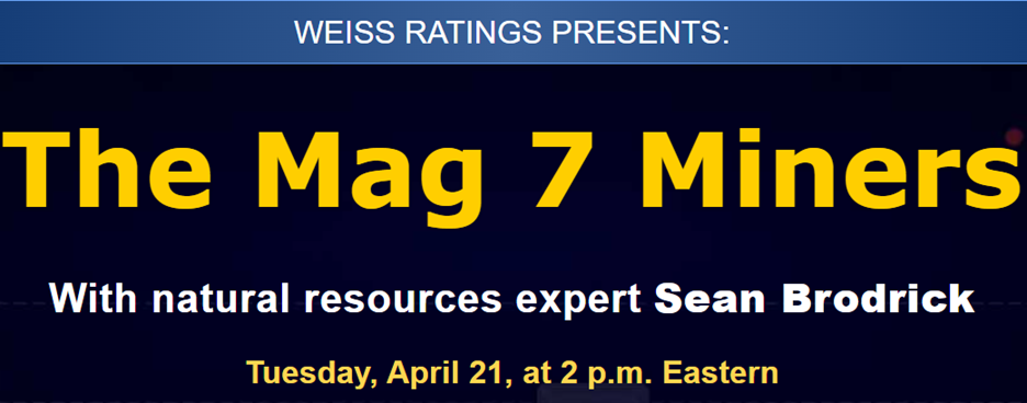 This coming Tuesday, April 21 at 2 p.m. Eastern, Sean Brodrick is revealing his new research report about what he’s calling “The Mag 7 Miners.”