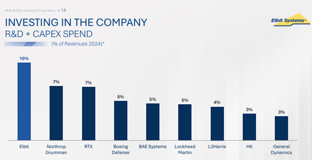 And the company is reinvesting a higher percentage of its revenues than Northrop, Raytheon, Boeing, BAE Systems, Lockheed, L3 Harris and more.