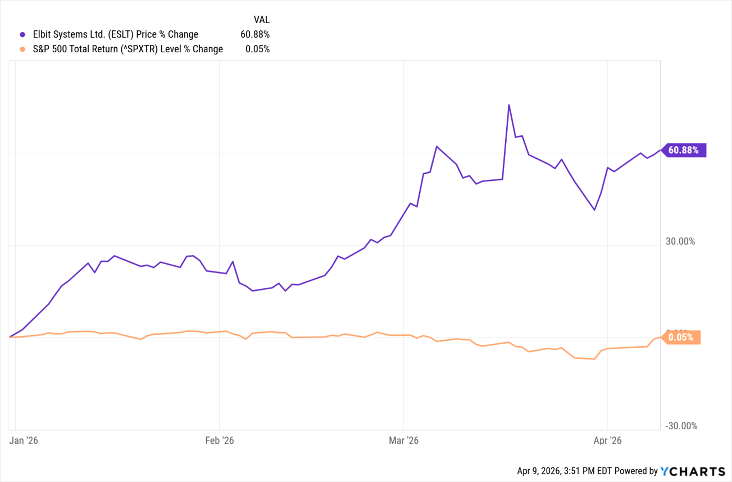 But unlike the S&P 500, which is flat year to date, ESLT ran up 60% in the first 12 weeks of 2026.